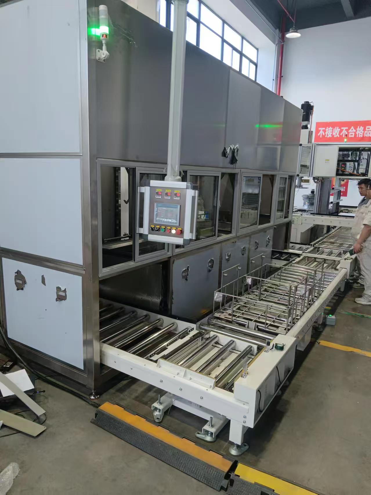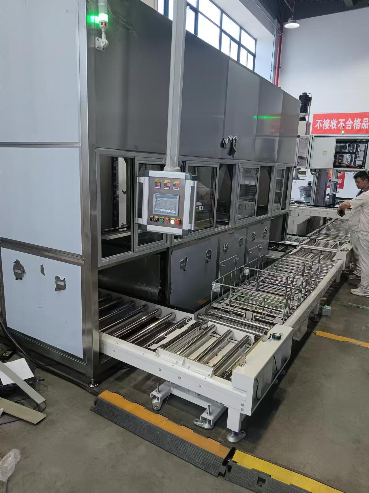 采用多臂式位移组合机械手,根据预设程序自动完成工件的输送、清洗、漂洗、干燥等工序。机械手将清洗篮依次送往各清洗槽,实现连续、高效的自动化清洗流程。